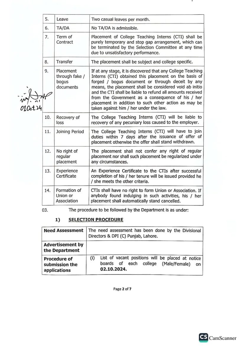 College Teaching Interns Jobs 2024 Apply Now. The job is published on 2nd October 2024. Higher Education Department has announced seven thousand three hundred fifty four college teaching interns. Five percent minority quota and three percent disable quota. The duration of internship is six months.