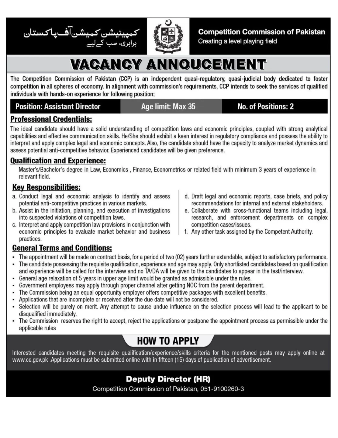 Competition Commission of Pakistan Jobs 2025 Apply Now. The job is published on 6th June 2025. The Competition Commission of Pakistan is an independent, quasi-regulatory body dedicated to foster competition in all spheres of economy. In alignment with commission requirement, CCP tends to seek the services of qualified individuals with hands on experience.