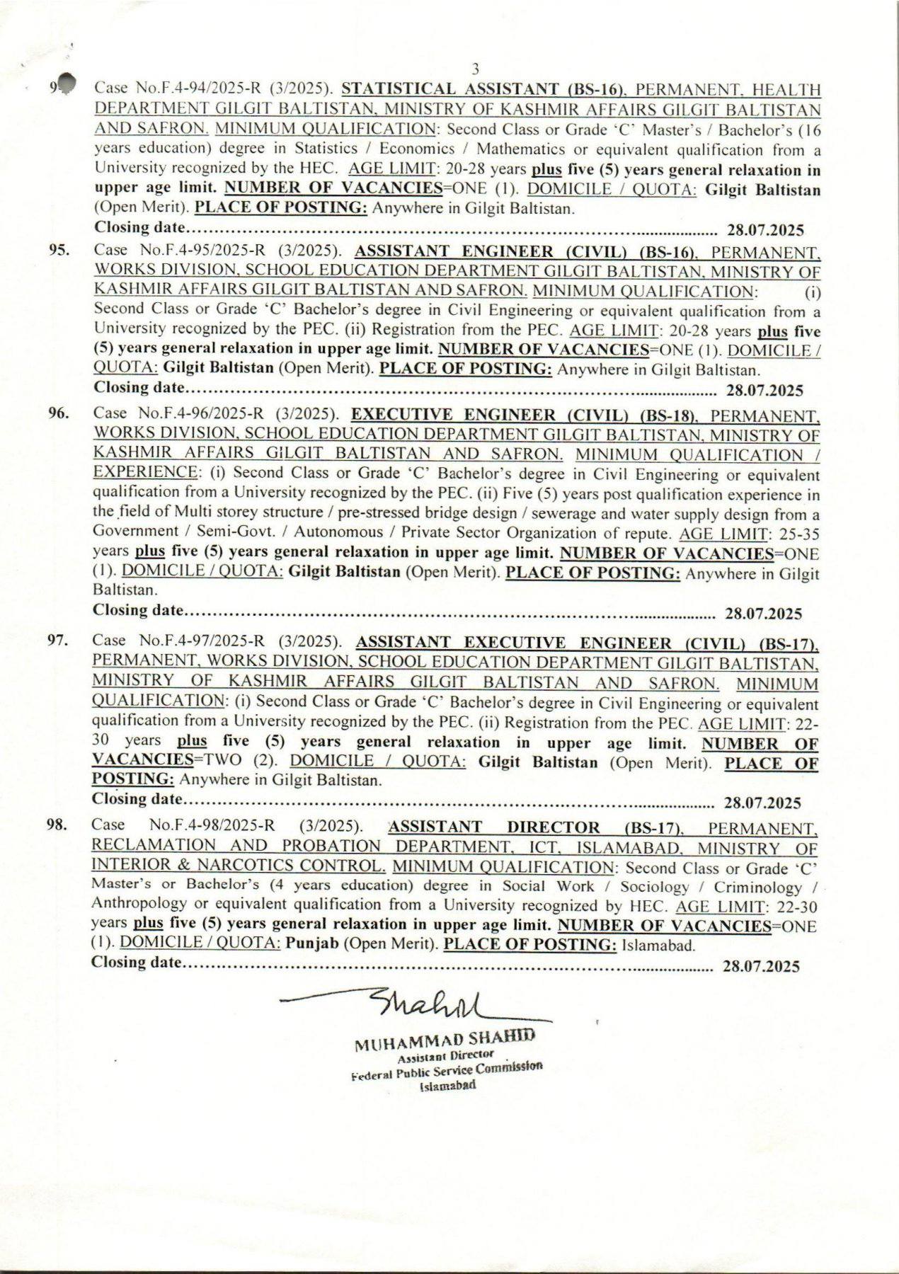 FPSC Jobs Ad No 3 2025 Apply Now. The jobs are published on 4th July 2025. The Federal Public Service Commission (FPSC) is a key organization in Pakistan responsible for recruiting talented individuals for various federal departments and ministries. It ensures a transparent, merit-based selection process to fill vacancies in government institutions.