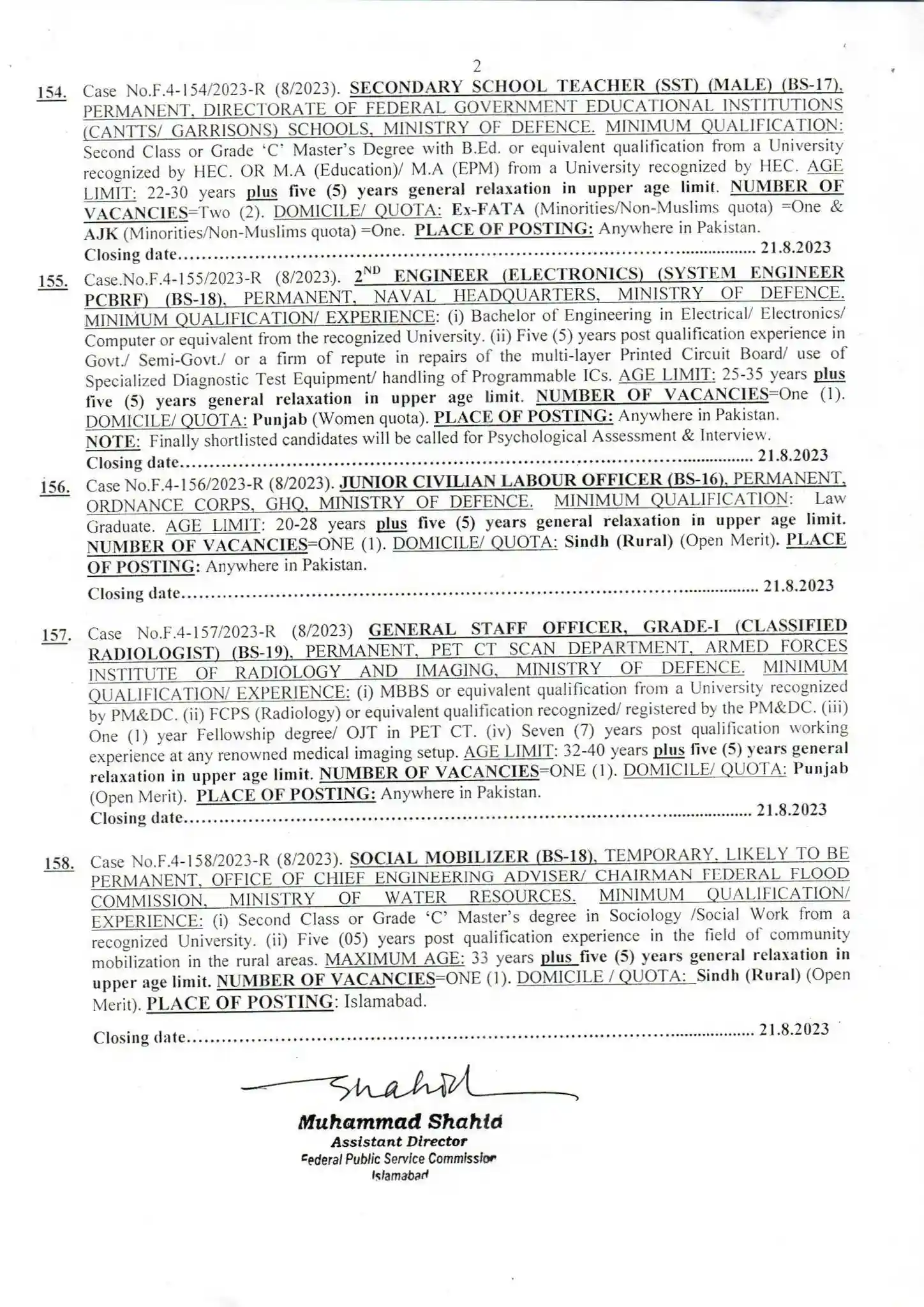 - General Staff Officer Grade I (Classified Radiologist) (BS-19)