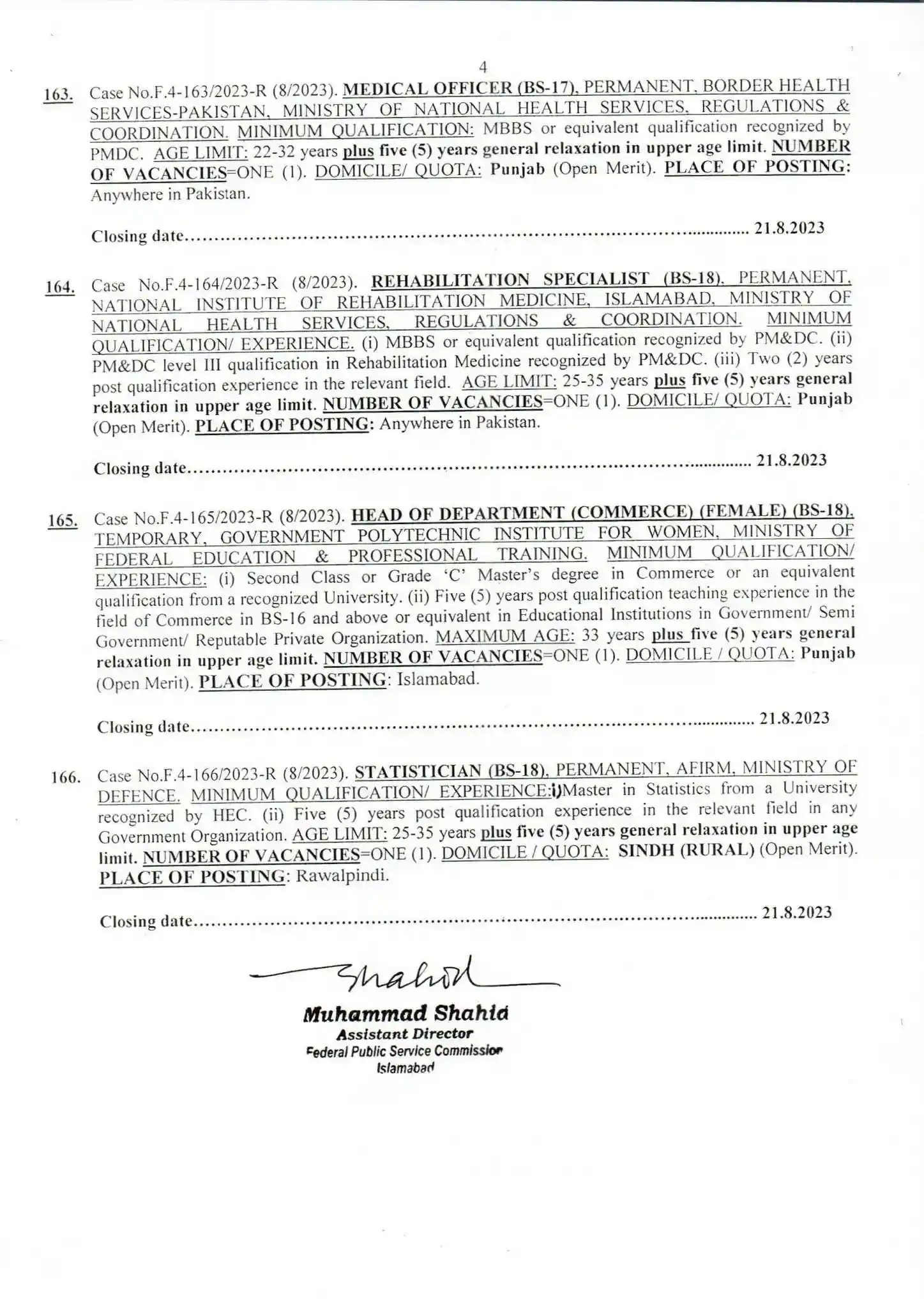 FPSC Jobs Advertisement No 8 2023 Apply Now. The advertisement is published on 4th August 2023 on FPSC official website. FPSC stands for Federal Public Service Commission. These are government permanent commission jobs.