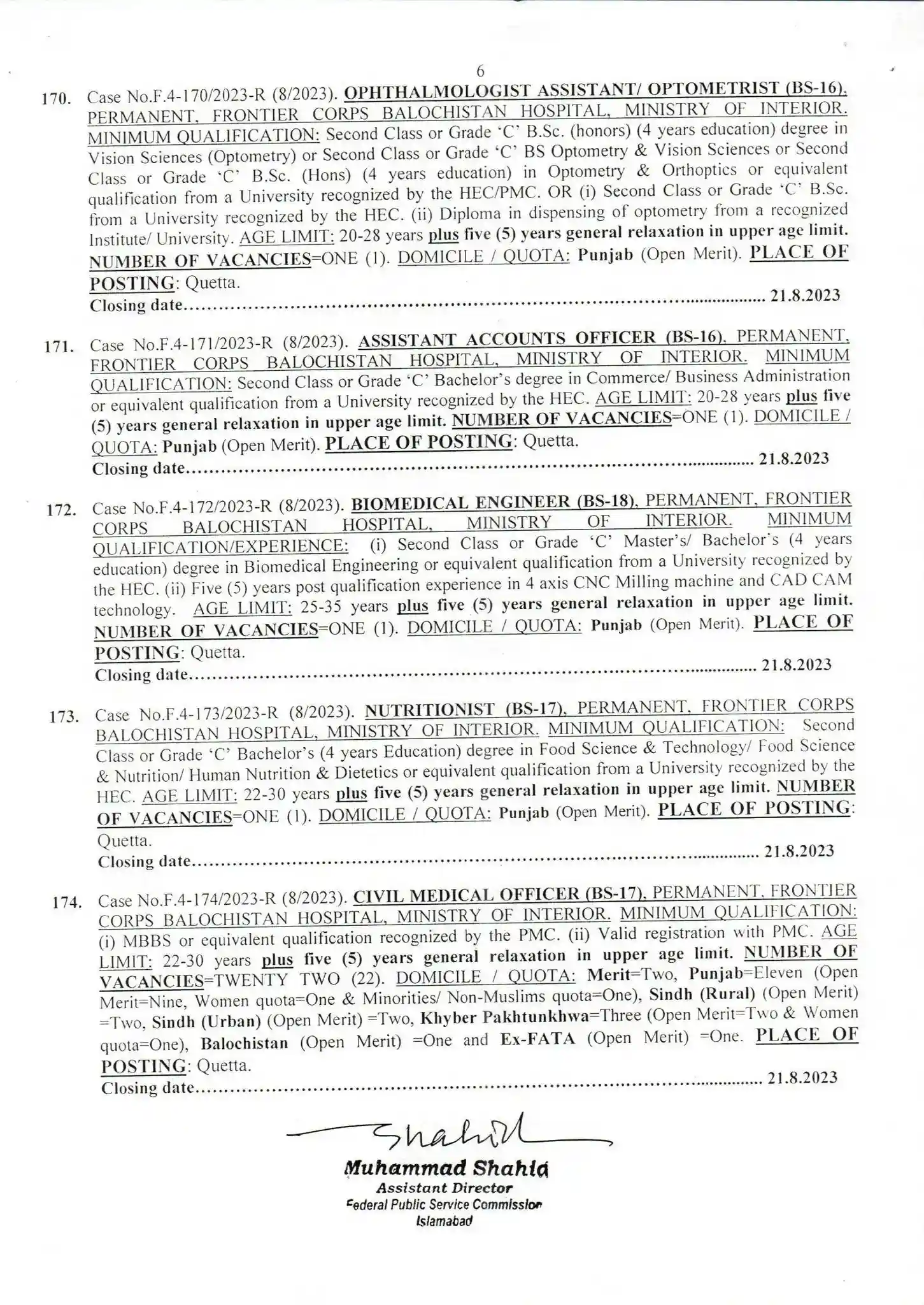 - Assistant Account Officer (BS-16)