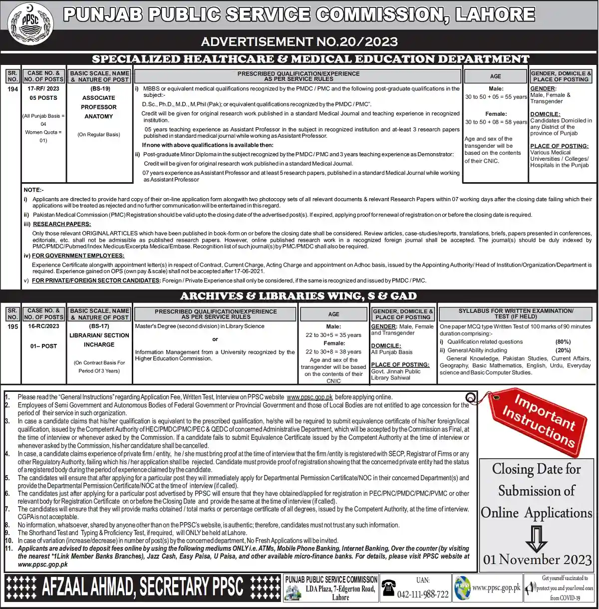 PPSC Jobs Ad No 20 2023 Apply Now. The advertisement is published on 18th October 2023. The total vacancies are thirteen for the candidate.