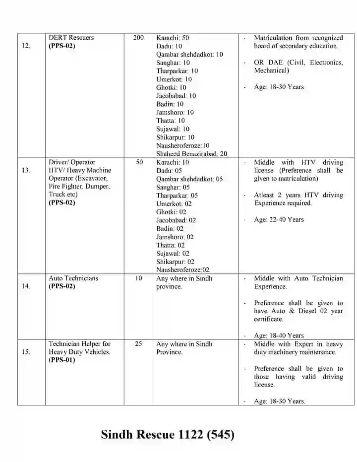 Sindh Emergency Rescue Service 1122 Jobs August 2023 Apply Now. The advertisement is published on 21st August 2023. The jobs are only for males and females. Government of Sindh has announced these job.